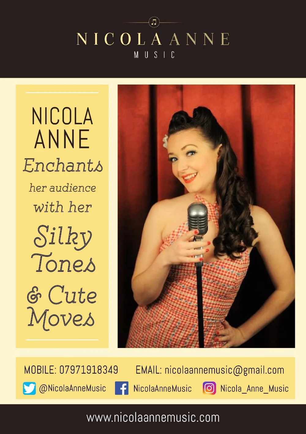 Her repertoire includes jazz classics, as well as the old favourite standards from the wonderful Music Hall era. Nicola Anne also has a 1920s - present day set, ensuring to bring back the good times whatever your era.
